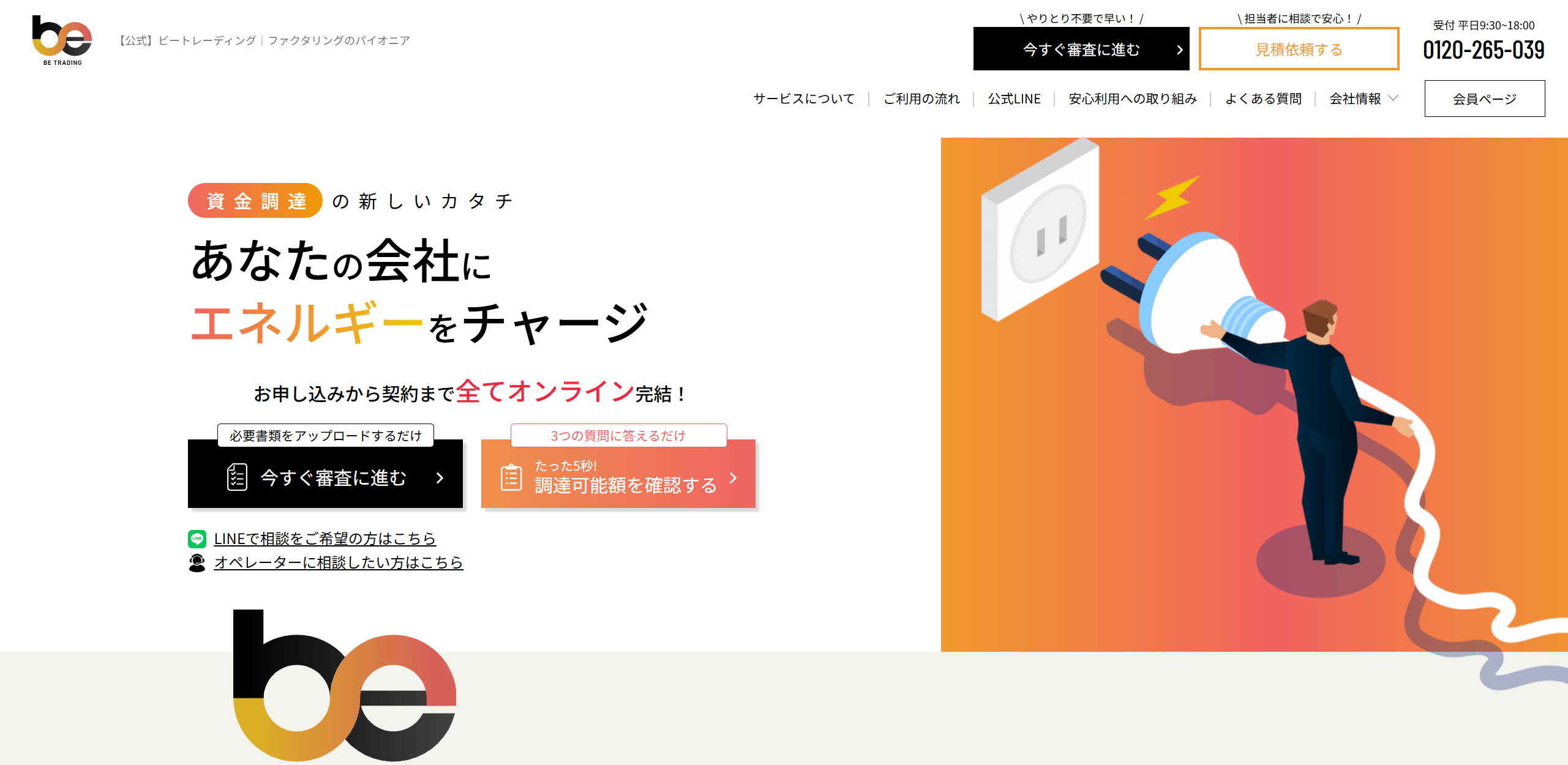 創業10年以上の実績を持つ信頼のファクタリングサービス。2社間ファクタリングに対応している点はもちろん、業界最短クラスの審査スピードが強みです。他社と比較して手数料が平均15%低く、資金繰り改善の費用対効果が抜群。年間3,000件以上の取引実績を誇り、リピート率90%以上という顧客満足度の高さも特筆すべきポイントです。24時間オンライン申込み対応と専任アドバイザーによる手厚いサポートで、あらゆる業種の資金調達ニーズに応えます。