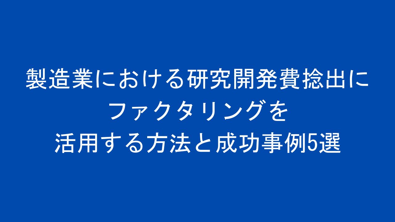 実は、そういった研究開発費の捻出に効果的な方法として『ファクタリング』を活用する製造業が増えているんですよ。