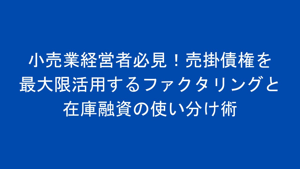 小売業において、安定した資金繰りは事業継続の生命線です。特に季節変動の大きい商品を扱う業種や、出店拡大を図る成長期の企業では、タイミングよく資金を確保することが重要な経営課題となります。この課題解決に有効なのが、売掛債権を活用する「ファクタリング」と在庫を担保とする「在庫融資」です。本記事では、小売業経営者が両者を効果的に使い分ける方法と成功事例を紹介します。