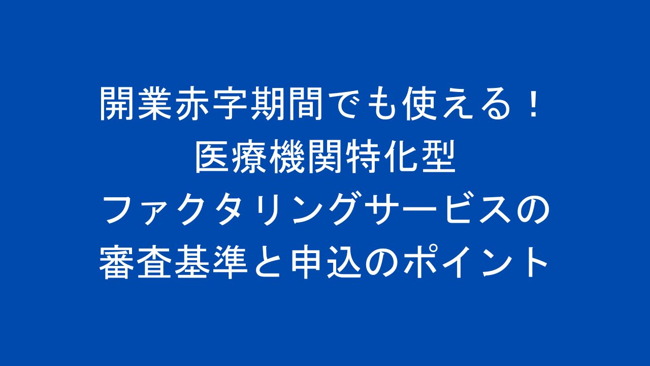 医療機関の開業後、安定した経営基盤を築くまでには一定の期間を要します。特に開業初期は設備投資や人材確保のコストがかさむ一方、患者数の増加や保険請求のサイクルが安定するまで資金繰りに苦労するケースが少なくありません。そんな時に活用できるのが医療機関特化型のファクタリングサービスです。本記事では開業赤字期間でも利用可能な医療機関向けファクタリングの審査基準や申込時のポイントについて詳しく解説します。