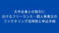 債務者の信用力です。取引先が大手企業や上場企業など信用力の高い企業であれば、手数料率が低くなる可能性が高まります。