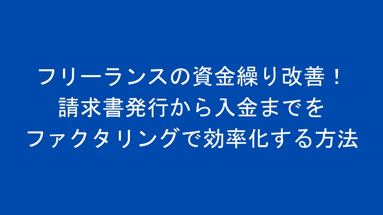 フリーランスの資金繰り改善!請求書発行から入金までをファクタリングで効率化する方法