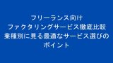 個人事業主が事業拡大期にファクタリングを活用する際、ファクタリング会社の選定は重要なポイントです。