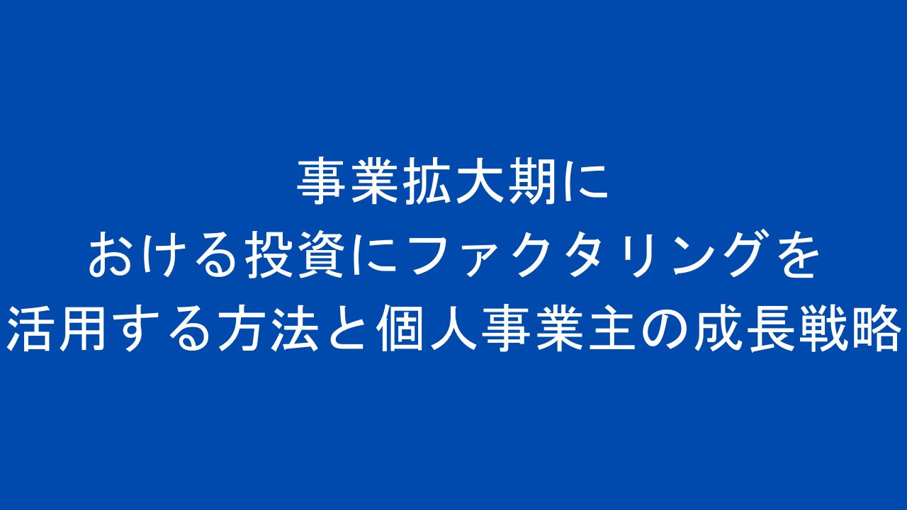 事業拡大期における投資にファクタリングを活用する方法と個人事業主の成長戦略