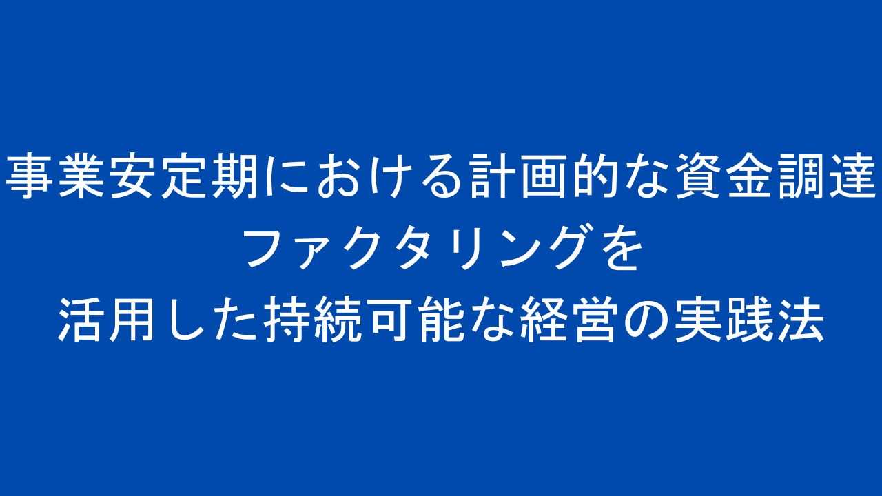 中でも「ファクタリング」は、銀行融資などの従来型の資金調達を補完し、事業の安定性と成長性のバランスを取るための有力なツールです。この記事では、事業安定期の企業がファクタリングを計画的に活用し、持続可能な経営を実現するための具体的な方法を解説します。