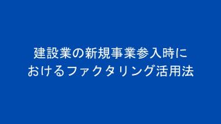 建設業界向け 建設業の新規事業参入時におけるファクタリング活用法